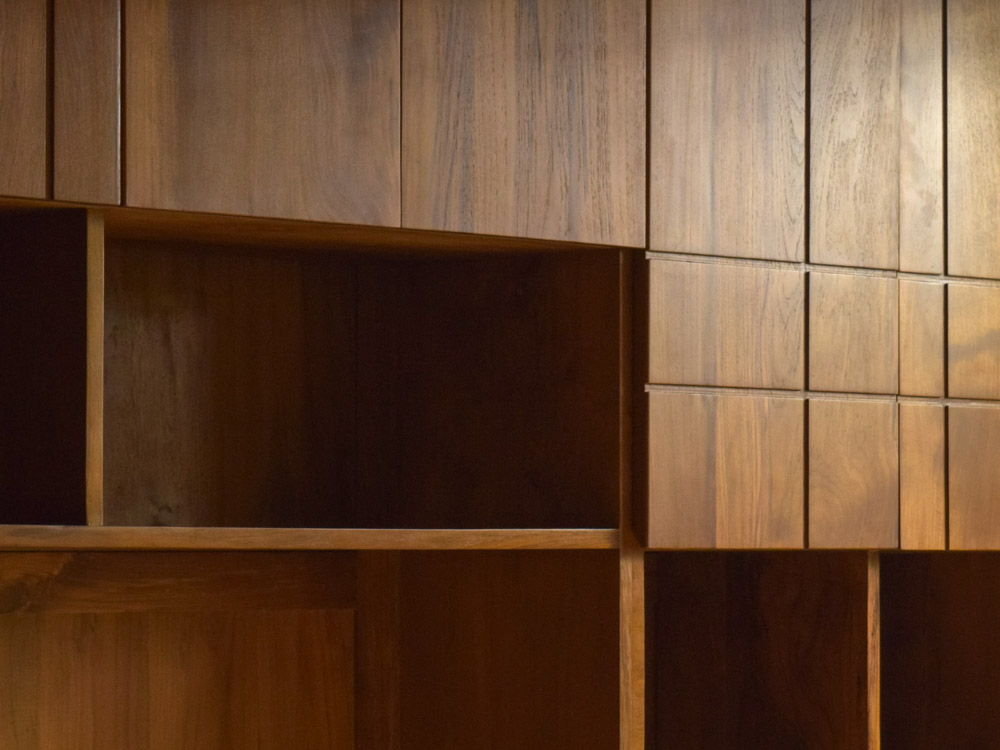 The custom-made solution is made of Javanese teak and stands out as a