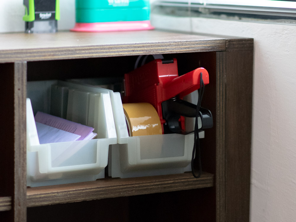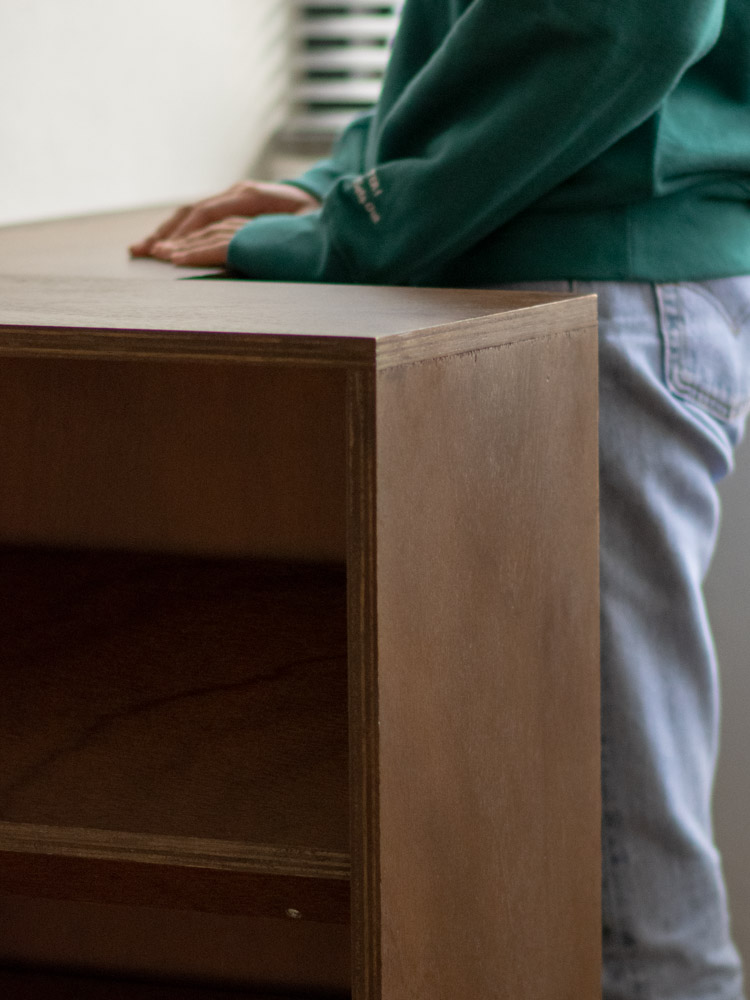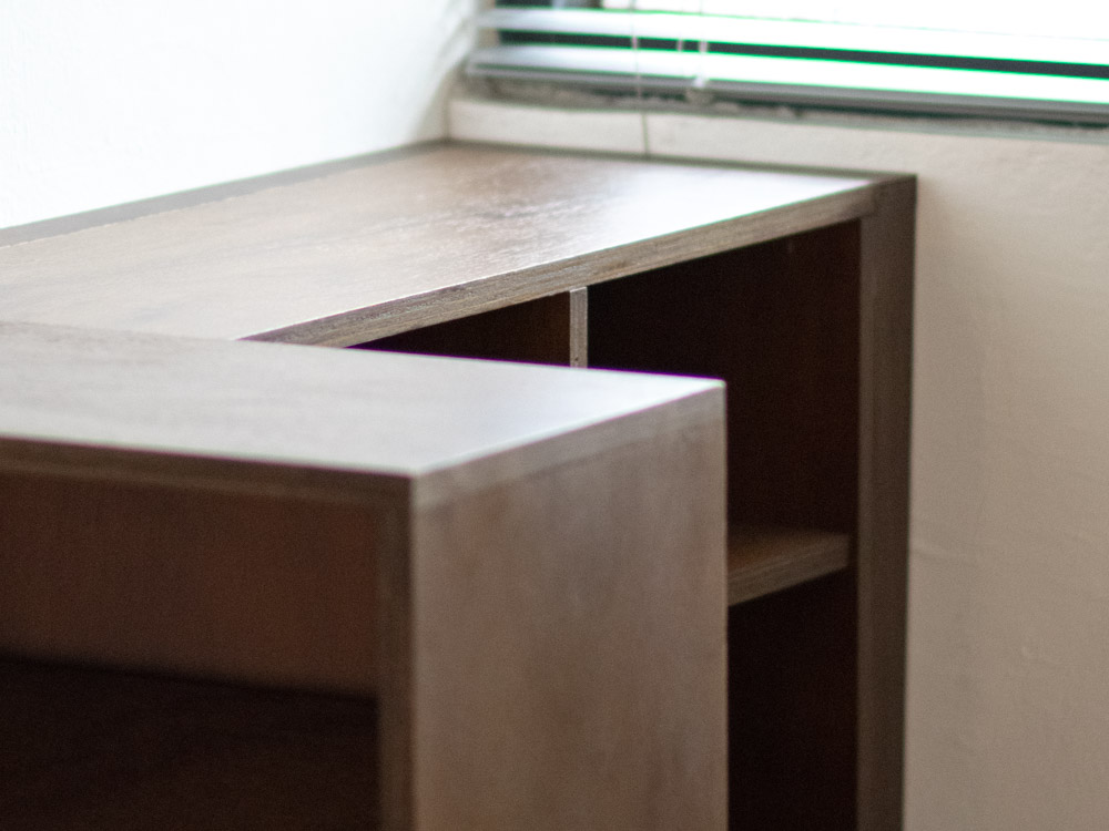 of the shop. Made of walnut like stained plywood, this combination of storage