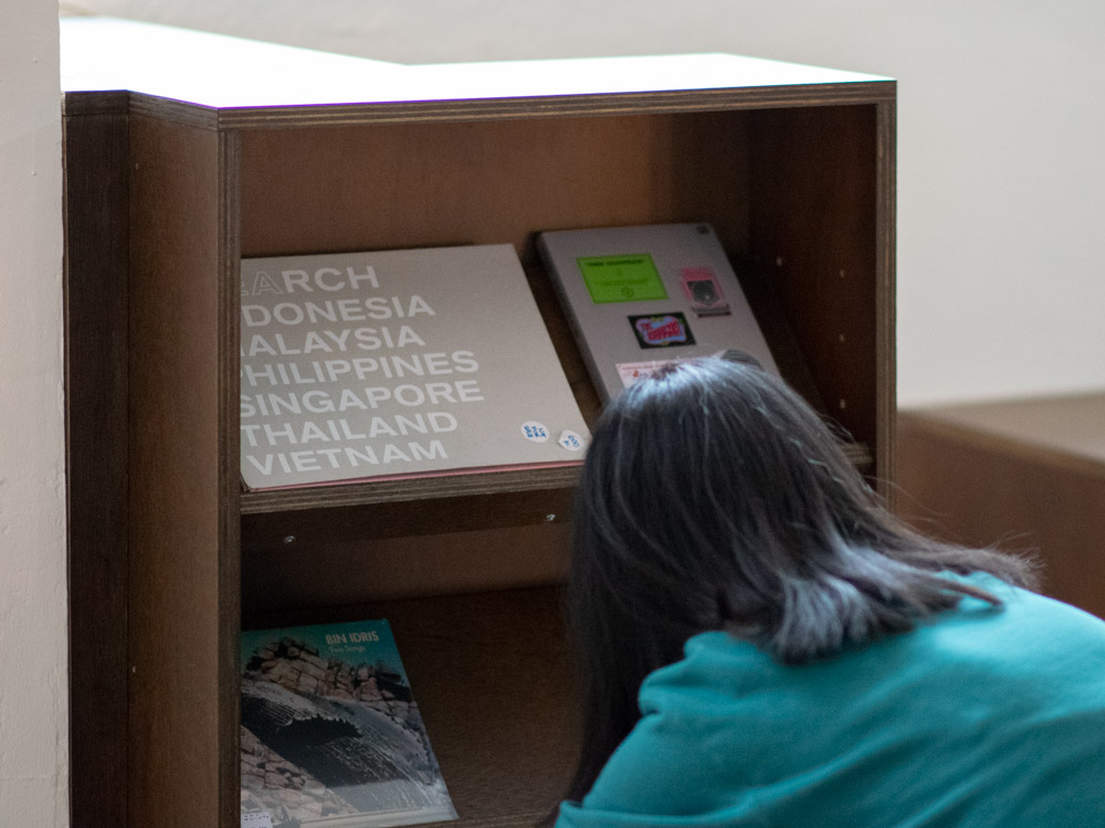 as well as hosts exhibitions in the same space. A set of custom furniture was created to fit a small corner